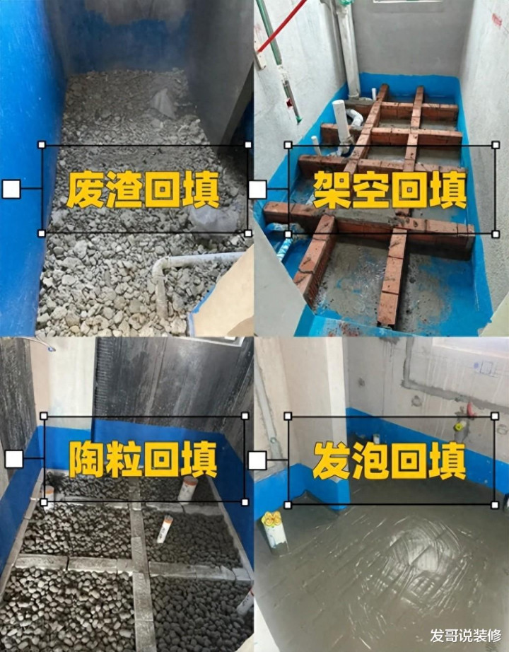 1、卫生间回填,你要是不吱声,我铁定就给你用一些碎石块埋进去,即便会破坏排水管和防水层,和我有半毛钱关系。但你就喜欢搞事情,非得让我先刷好防水、固定下水管,还得做好坡度,最后用红砖砌田字格陶粒回填。这活一搞,它就是两三天,你给我的那点工费还不够一天的饭钱,反正都是要埋到底下的,何必那么较真呢?
